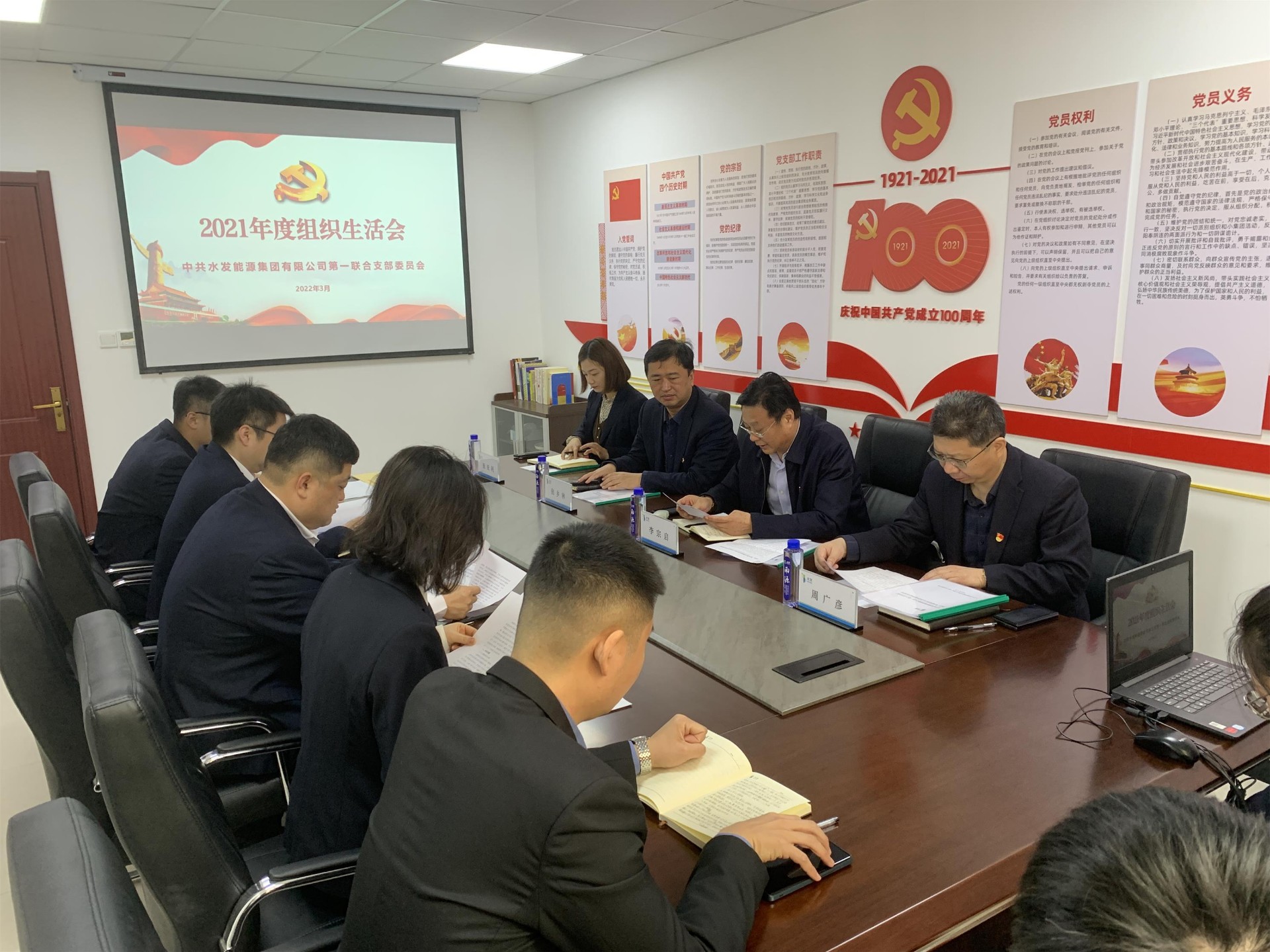 3月4日上午,水發能源第一聯合黨支部召開2021年度組織生活會和民主評議黨員工作。水發能源集團黨委副書記李宗啟和黨委工作部同志現場參會并指導,黨支部全體黨員參加。