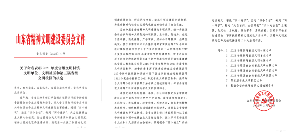 3月15日,山東省精神文明建設(shè)委員會印發(fā)《關(guān)于命名表彰2021年度省級文明村鎮(zhèn)、文明單位、文明社區(qū)和第三屆省級文明校園的決定》,水發(fā)能源集團被正式授予省級文明單位榮譽稱號。 ?